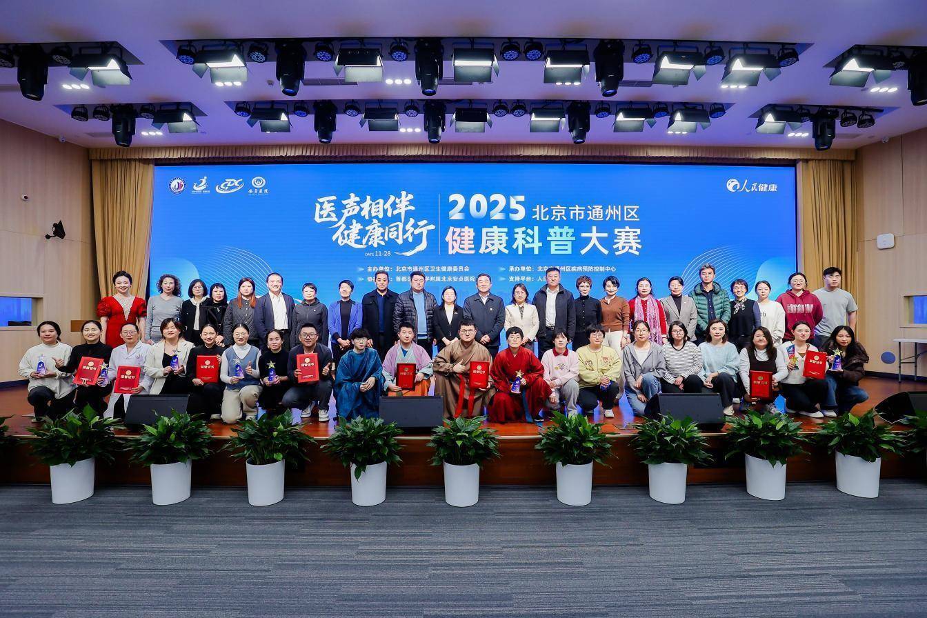 11月28日,“2025年北京市通州区健康科普大赛”在首都医科大学附属北京安贞医院(通州院区)迎来决赛角逐,来自全区各医疗卫生机构的众多参赛队伍齐聚一堂,他们带着精心准备的科普作品,以生动有趣、通俗易懂的方式,向观众和评委们展示涵盖疾病预防诊治、健康生活方式、合理用药等多方面的健康知识。本次决赛设一等奖1名、二等奖3名,三等奖6名。
