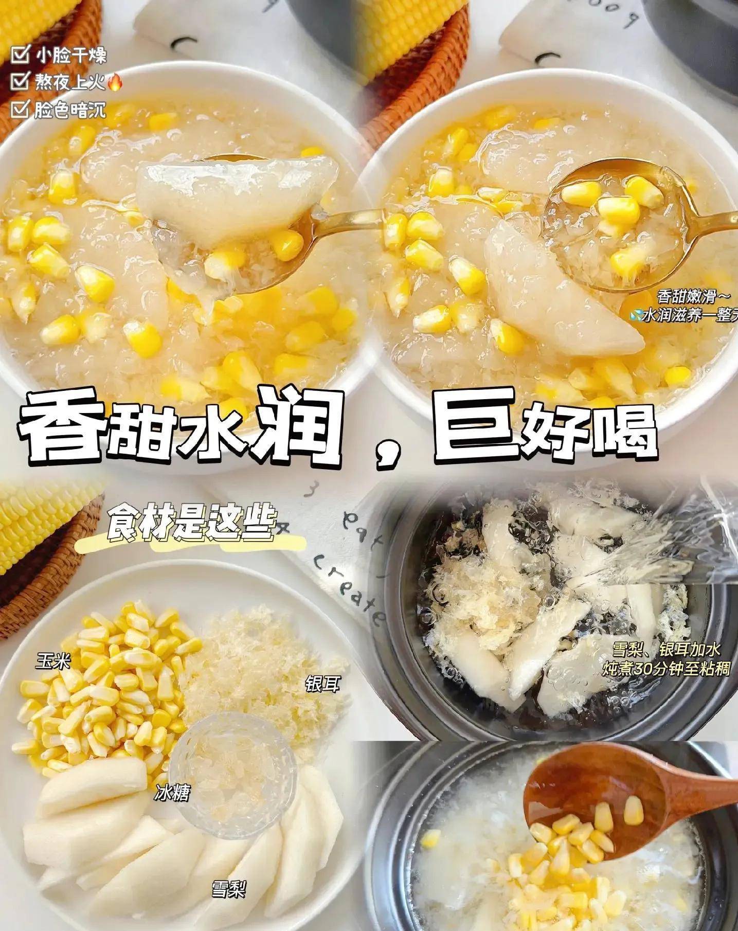 二、玉米雪梨银耳汤:润燥降火,睡眠一夜安稳